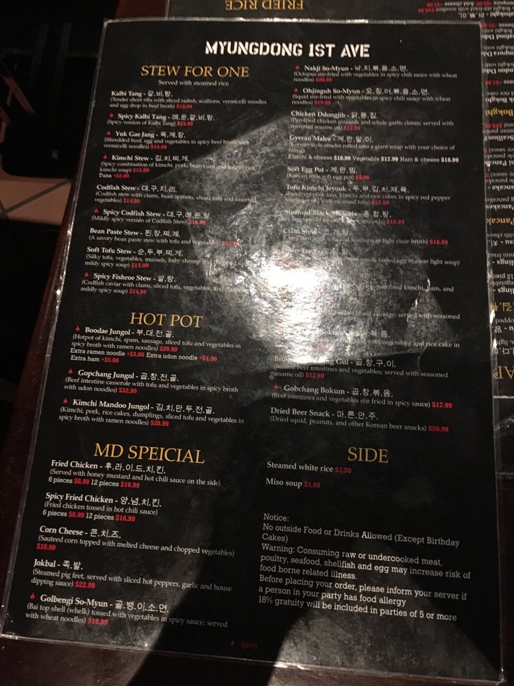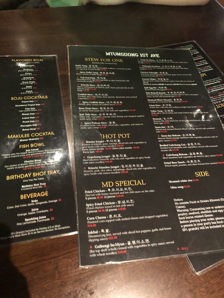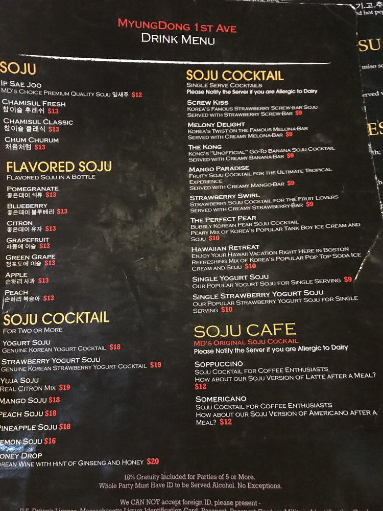 Myung Dong 1st Ave is a vibrant Korean bar in Allston, MA, offering a wide range of options for customers. From traditional dishes like Edamame and Rice Cake Skewers to unique offerings such as Corn Cheese and Gyeran Malee, there is something for everyone. The atmosphere is lively, with K-pop music videos playing and a diverse menu reflecting the bustling energy of the venue. Customers have praised the quick service and accommodating staff, making it a great spot for a casual night out with friends. Don't miss out on their signature drinks, like the watermelon soju, and be sure to try their popular dishes like Toekbokki and soy sauce fried chicken. Myung Dong 1st Ave promises a fun and flavorful experience for customers looking to enjoy Korean cuisine in a lively setting.